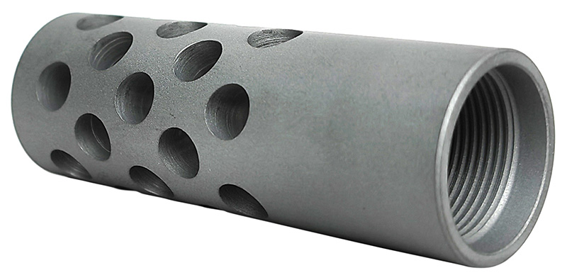 Также наш ДТК можно использовать на стволах с достаточно длинной резьбой (длина резьбы на стволе свыше 20 миллиметров), в этом случае ДТК упирается не в упорный бортик после резьбы на стволе, а непосредственно в дульный срез, для чего внутри ДТК выполнена упорная полка, строго перпендикулярная оси канала ствола.